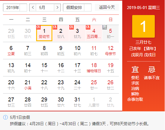 勞動節(jié)假期安排通知 時間:2019-05-09 作者:qinjin 游覽 保險絲供應商秦晉電子勞動節(jié)放假安排如下: 勞動節(jié)即將來臨,根據(jù)《國務院辦公廳關(guān)于調(diào)整2019年勞動節(jié)假期安排的通知》,2019年勞動節(jié)放假安排調(diào)整為2019年5月1日至4日,共4天。4月28日(星期日)、5月5日(星期日)上班。 祝大家節(jié)日快樂! 深圳市秦晉電子科技有限公司 2019年04月16日